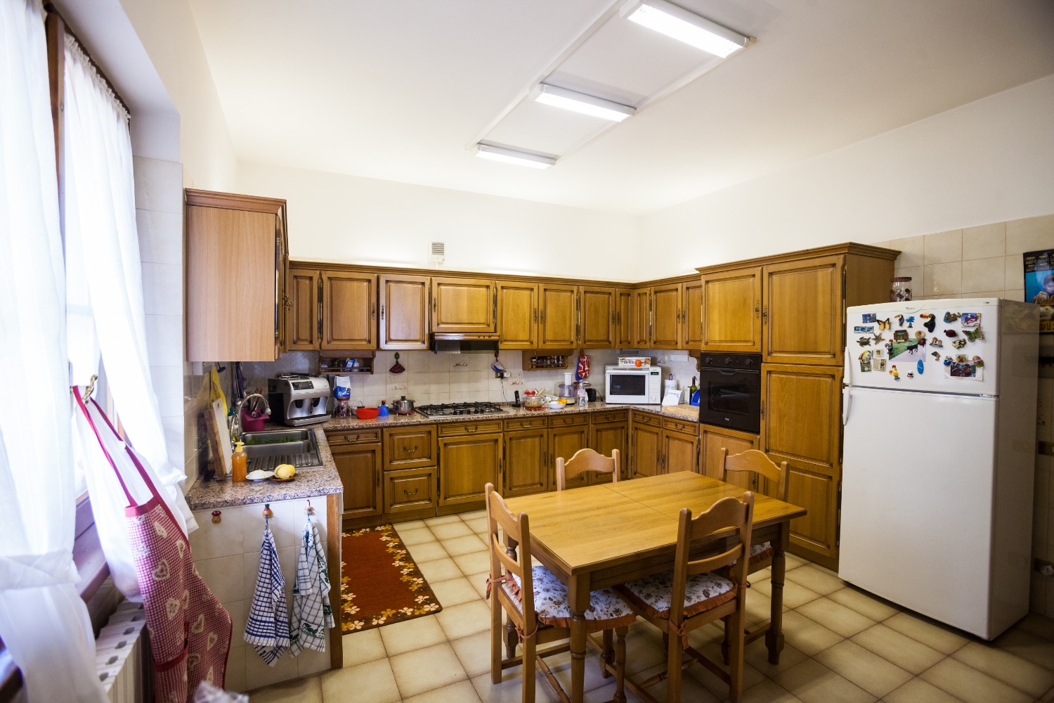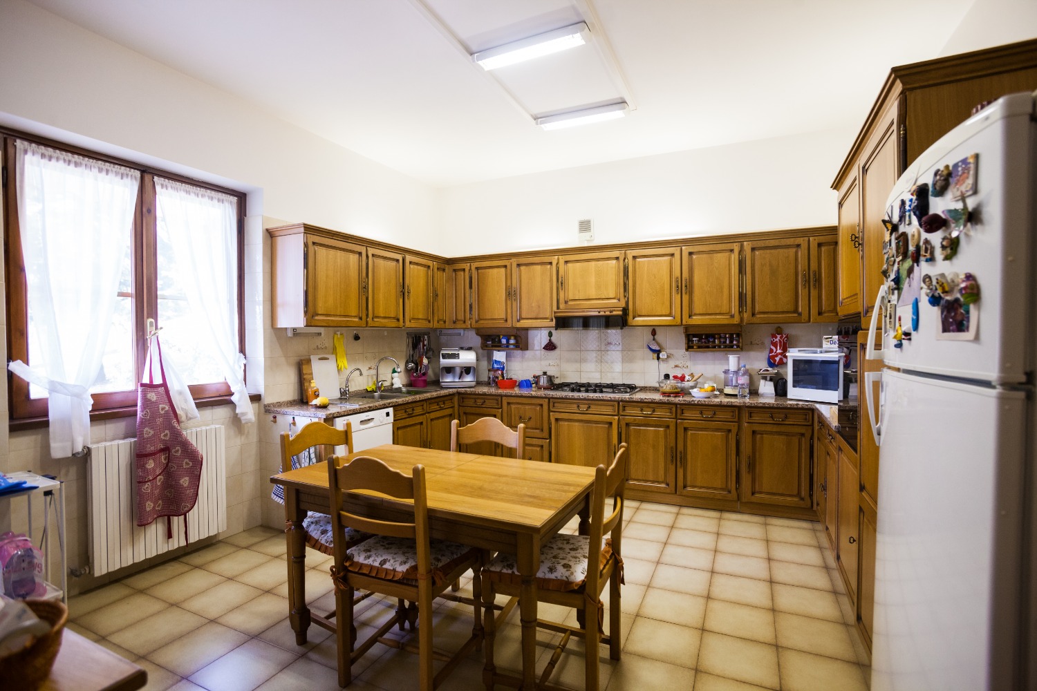 Instead the lower ground floor, absolutely moisture free thanks to a space between wall, is mostly used as a tavern with the kitchen and the chimney, which is ideal for the family conviviality in the coldest periods of the year, the cellar, the storage room for the garden furniture, the two parking place garage and two bathroom; a further eight covered parking spaces are located adjacent to the tennis court.