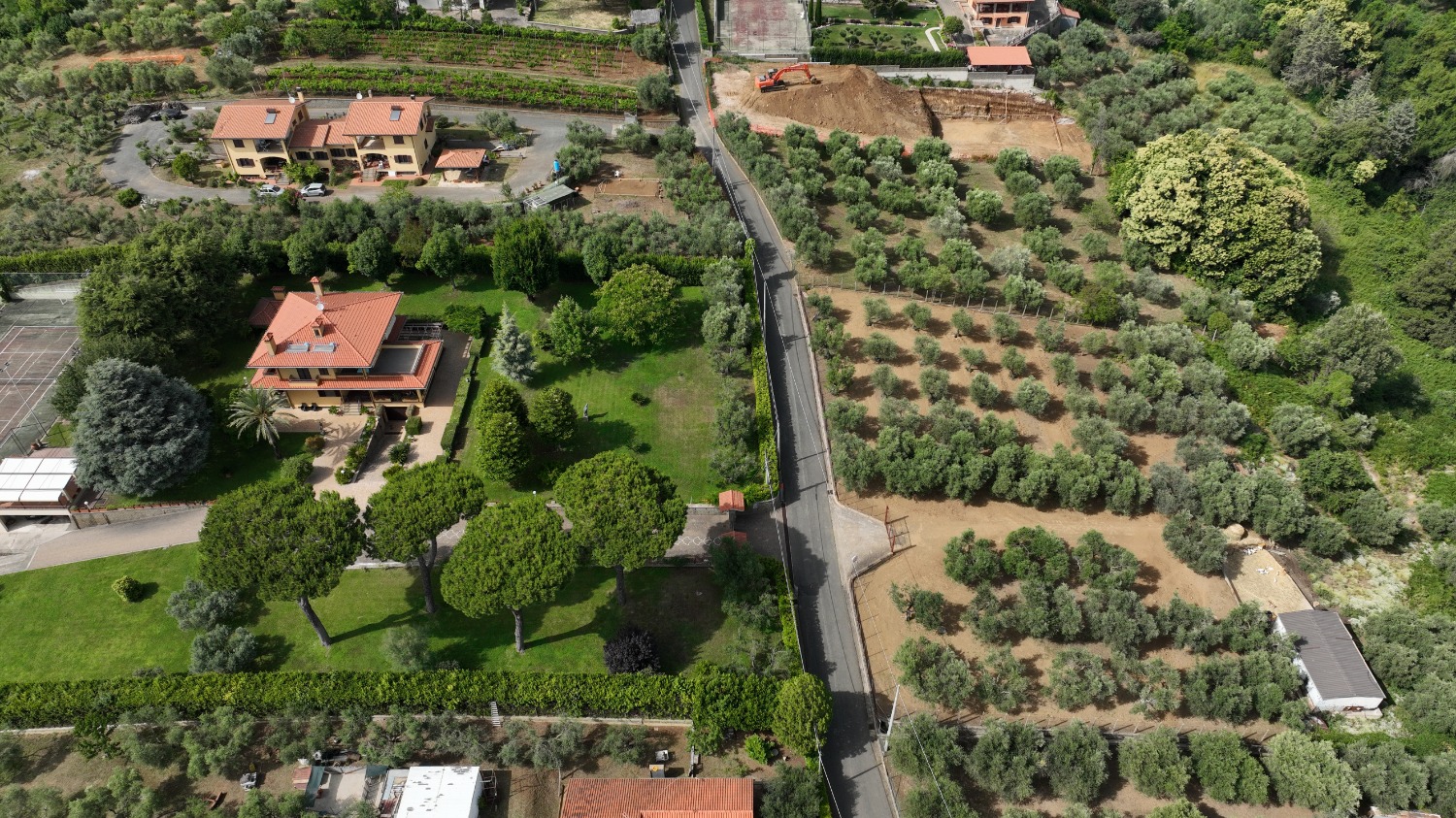 La proprietà sita in Contrada Faiola, Velletri, consta di un totale di circa 2 ettari, tra casa padronale, e aree esterne.